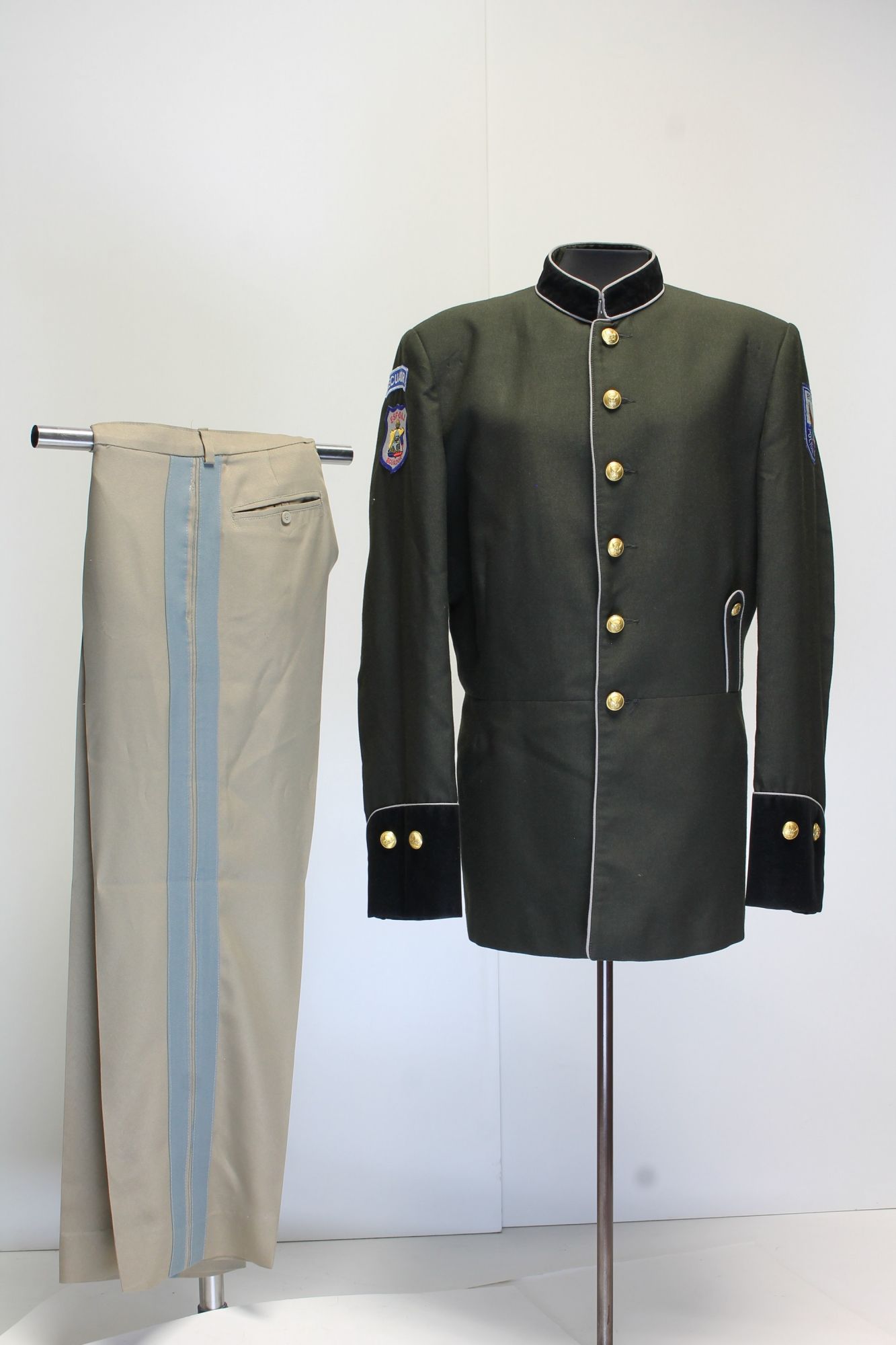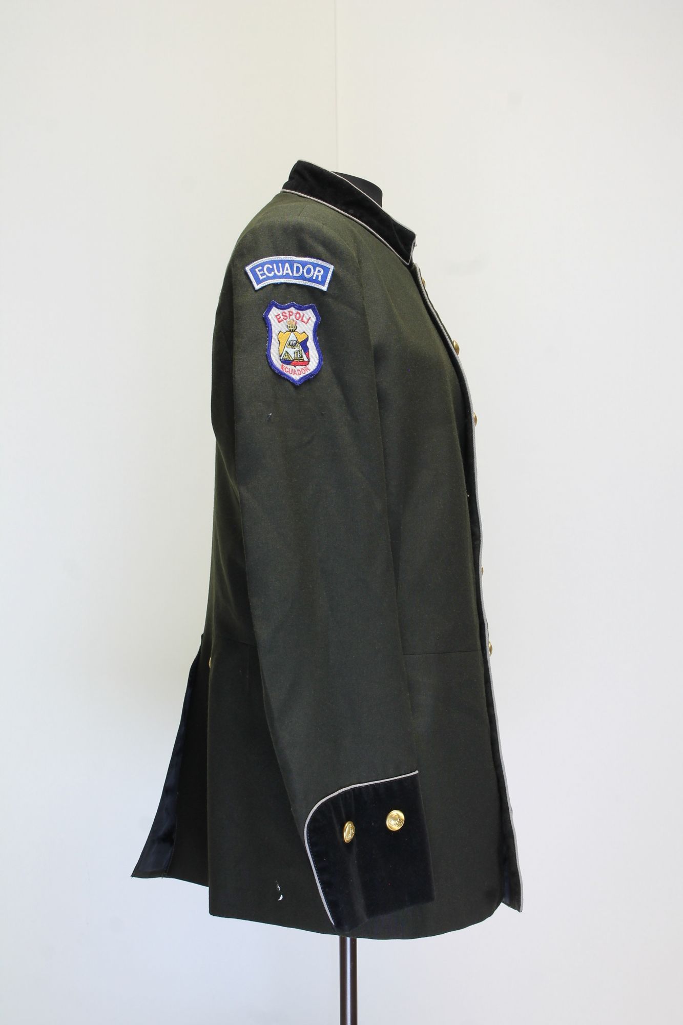 Guerrera de color verde oscuro y vivos grises, puños y cuello de paño negros con botones dorados. En la manga derecha el parche de la Escuela Superior Policial y sobre éste uno que dice "Ecuador". En la otra manga lleva la insignia de la Policía Nacional. No tiene palas en los hombros . Pantalón color café beige con vivos color gris.